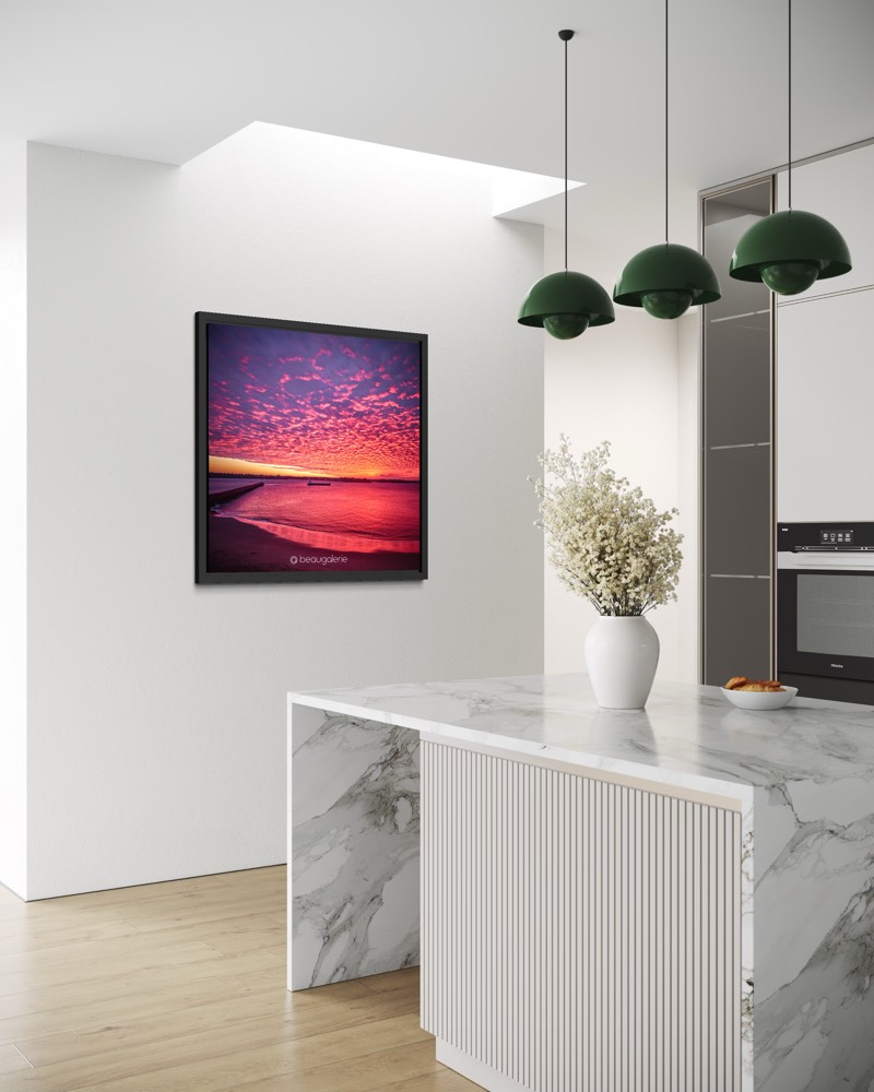 BeauGalerie n’a pas hésité à aller chercher au fond des méandres des milliers de papiers disponibles pour vous proposer une perle rare. Ce papier a un aspect métallique ultra-brillant au résultat surprenant. Il est l’idéal pour les images contrastées à fort détail, et il vous transporte dans une nouvelle dimension du tirage d’Art. Il s’agit du papier Hahnemühle Photo Rag Metallic 340g/m² Avec ce papier, vous aurez tous les avantages des tirages sous Plexiglas sans les inconvénients. Si, comme nous, vous voulez une image qui « claque » et dans laquelle on ne se voit pas dedans — le défaut majeur des tirages sous Plexiglas — vous serez conquis par ce papier tout simplement fabuleux !