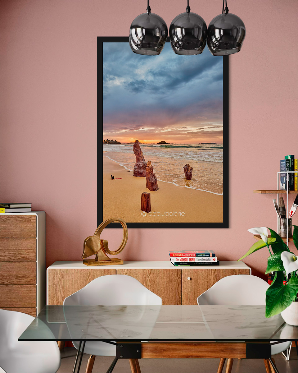 Cette photographie, réalisée au coucher du soleil, révèle la puissance graphique et l’âme historique des brises-lames de Saint-Malo. Imprimée avec un soin artisanal sur papier d’art haut de gamme, elle trouve naturellement sa place dans un intérieur élégant, apportant la sérénité et la force des paysages marins bretons.